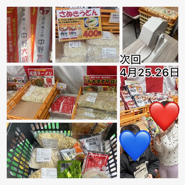 次回は2026年4月25、26日開催。4月の工場直売のお買い得情報等は「大成麺市場だより4月号」でご案内します。