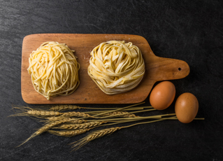 パスタの製法は大きく分けて押出式製法とロール式製法があります。ロール式製法で作る生パスタは、手打ち風のコシがあり弾力のある食感が特徴。絹のようなやわらかさとモチモチした食感をお楽しみいただけます。